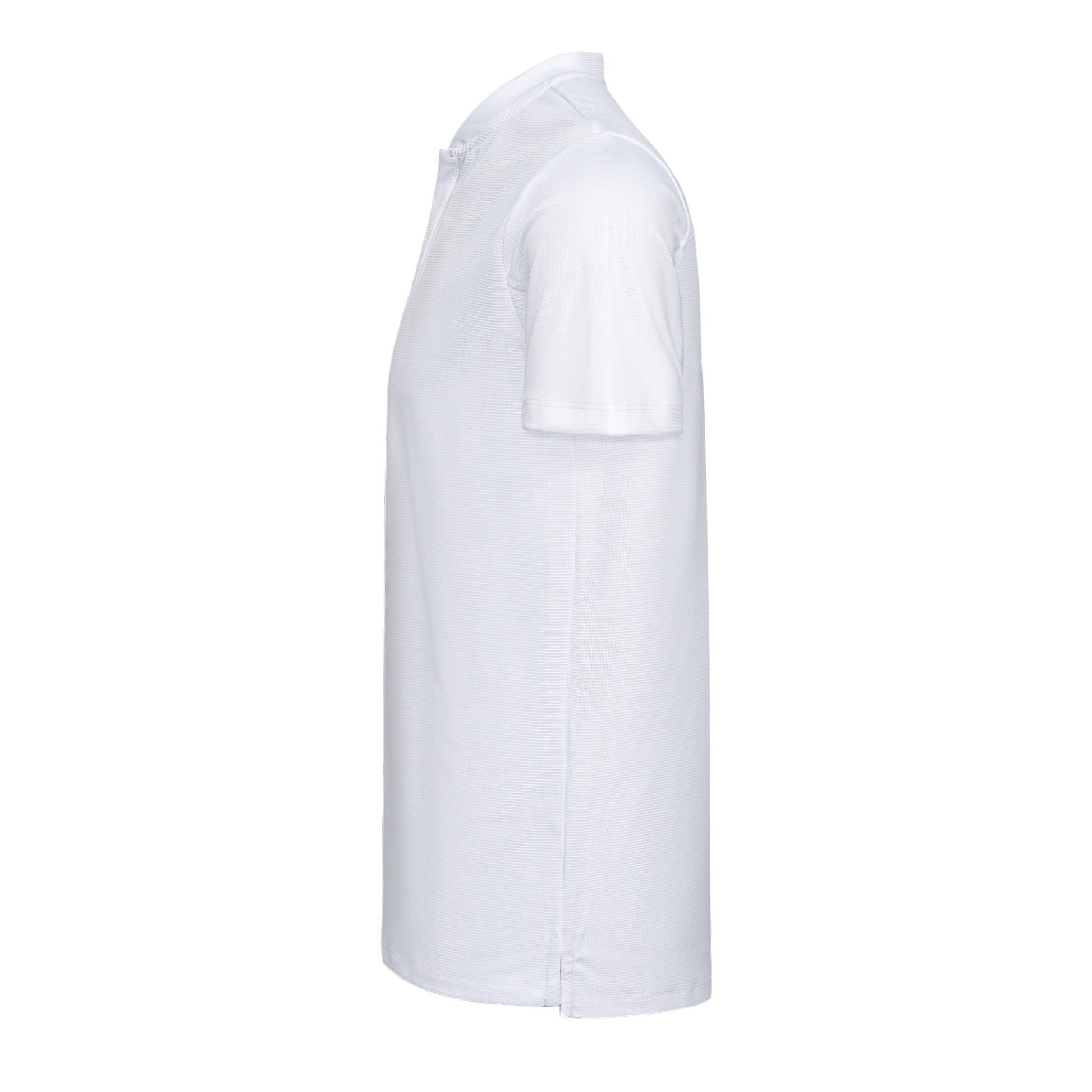 The Pinnacle 2.0 Blade Polo provides a sleek streamlined design, perfect for the board room or putting green. Constructed with a specialty blend of recycled polyester, and high percentages of nylon & spandex, this no-collar polo offers superior mobility and remarkable breathability. The blade or varsity-shaped collar provides a new modern look to the standard polo, that's professional enough for any business-casual occasion.How does it fit?